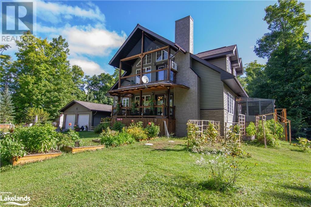 You are definitely going to want to see this fabulous Custom Built Home! You will admire the design, attention to detail and outstanding finishes in this 3 bedroom. 2 washroom, 2400 sq ft home. Enjoy the open concept, bright living area with soaring ceilings, heated flooring and lots of room to entertain. The main floor features the Primary Bedroom with walkout to huge Sunroom, Main Floor Laundry and a custom washroom with jacuzzi tub. A spacious Family room overlooks the kitchen/dining area and also sports a walkout to a balcony. The full lower level has high ceilings with lots of room for storage and ready for you to finish to your own taste. An oversized 2 vehicle garage workshop is fully insulated and has both heating and air conditioning. Outdoors enjoy gathering around the fire pit and making pizza in the custom, brick outdoor oven. Lots of out buildings for storage or maintain current use as chicken coops. The OVER 40 ACRES of clean hardwood forest is filled with wildlife and numerous trails are groomed throughout. Ideal for ATV, snowmobiling, hiking and camping. This gem has total privacy and is located only 2 minutes from Minden Village. A marvellous place to live year round and call HOME!!!! (id:6289)