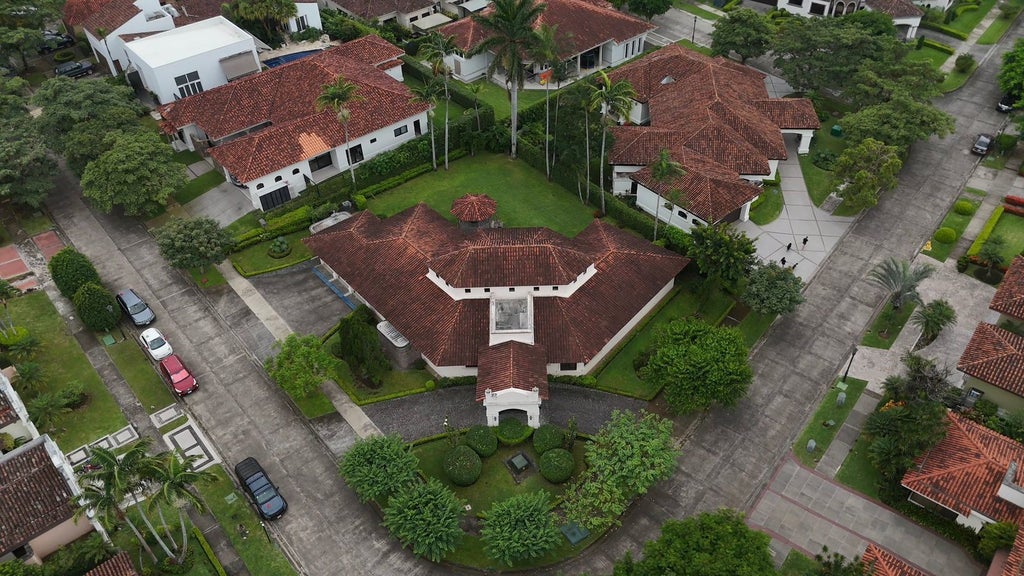 This single-level colonial masterpiece sits on a generous 1,400m² lot and showcases timeless details such as handcrafted cenizaro woodwork, vaulted ceilings with exposed beams, artisan floors, and a welcoming terracotta-tiled portico entrance.